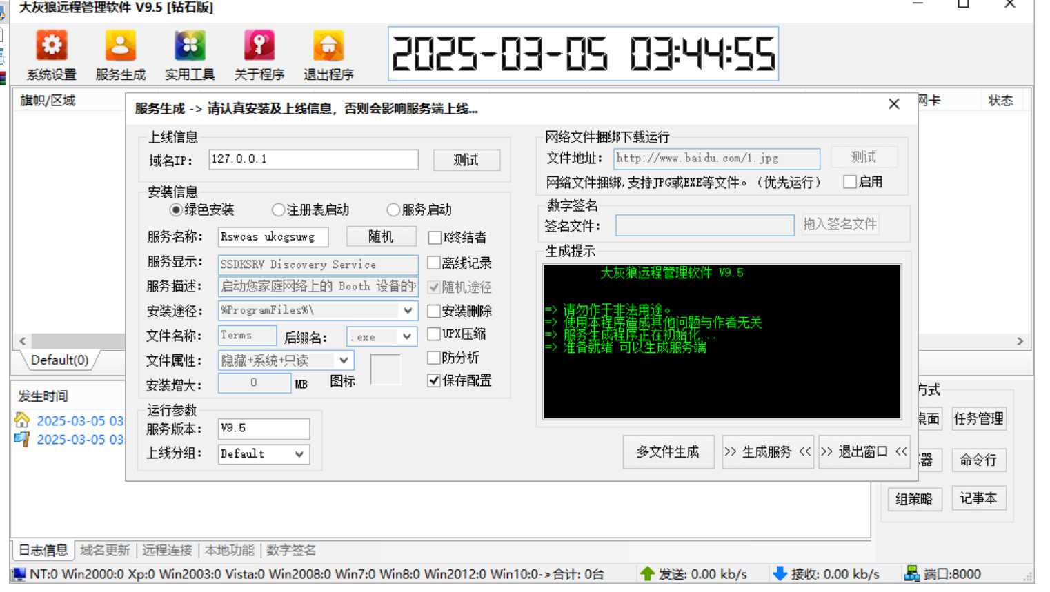 该项目只分享大灰狼远控样本, 请勿用于任何非法用途. 需自行承担所有后果, 本人将不承担任何法律及连带责任。 主控稳定,支持万台同时在线。 目前可生成shellcode,与主流免杀技术项结合,可配合更多奇技淫巧