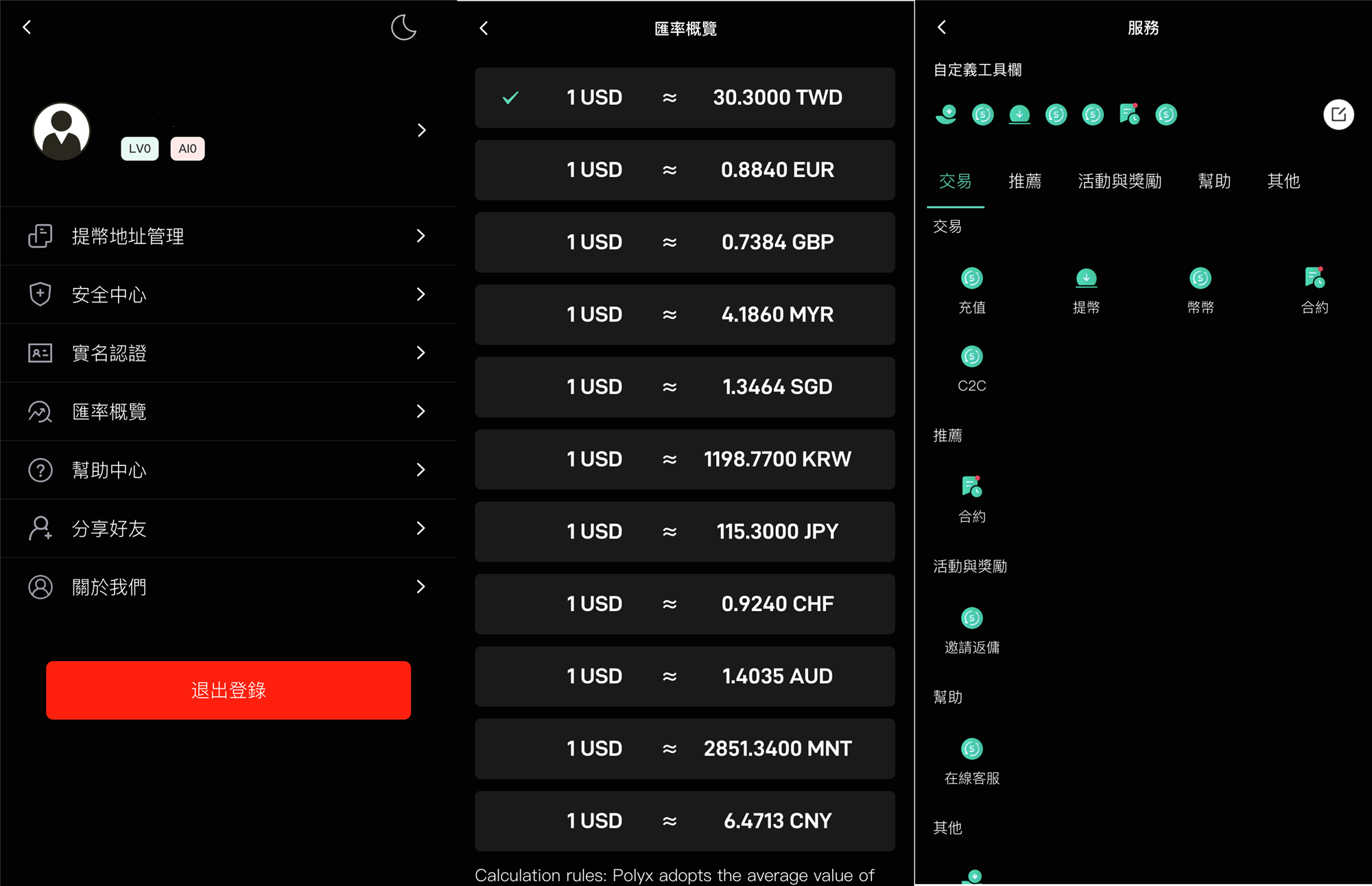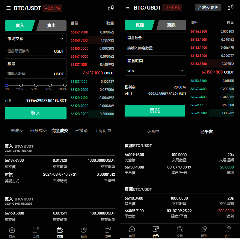 ui也不错功能支持:币币交易、合约交易、秒合约交易、c2c、认购、理财等
