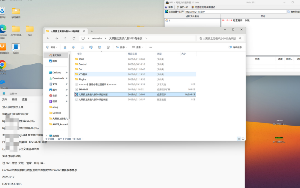 远程更新免杀特征库,购买后包维护。登入获取授权工具 机器码打开远控可获取 ,lqwljs原.dat 是生成exe小马 lqwljs.dat 是生成白加黑dll小马 去掉字改成lqwljs.dat 是生成白加黑dll小马文件 白 文件夹是白加黑dll libcurl.dll 命名 压缩包里带图标白文件启动文件 免杀过写启动项 过 360 微软 火绒 管家 金山 等... Control文件夹中解压终极生成文件加壳VMProtect最新版本免杀